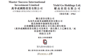 由领智企业融资担任独立财务顾问的主板上市公司:耀高控股有限公司(股份代号:1796)就其无条件强制性现金要约向股东寄发综合文件