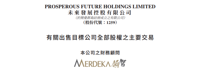 领智企业融资有幸担任香港主板上市公司未来发展控股有限公司(股份代号:1259)有关出售目标公司全部股权之主要交易之财务顾问