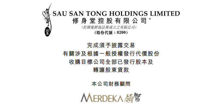 由领智企业融资担任财务顾问的GEM上市公司修身堂控股有限公司(股份代号:8200)欣然宣布完成有关收购目标公司之须予披露交易
