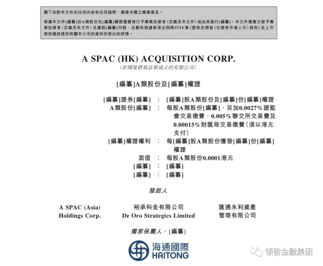 由领智金融集团参与投资的A SPAC (HK) Acquisition Corp向香港交易所提交上市申请