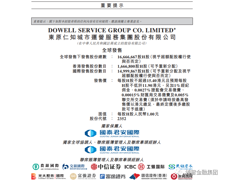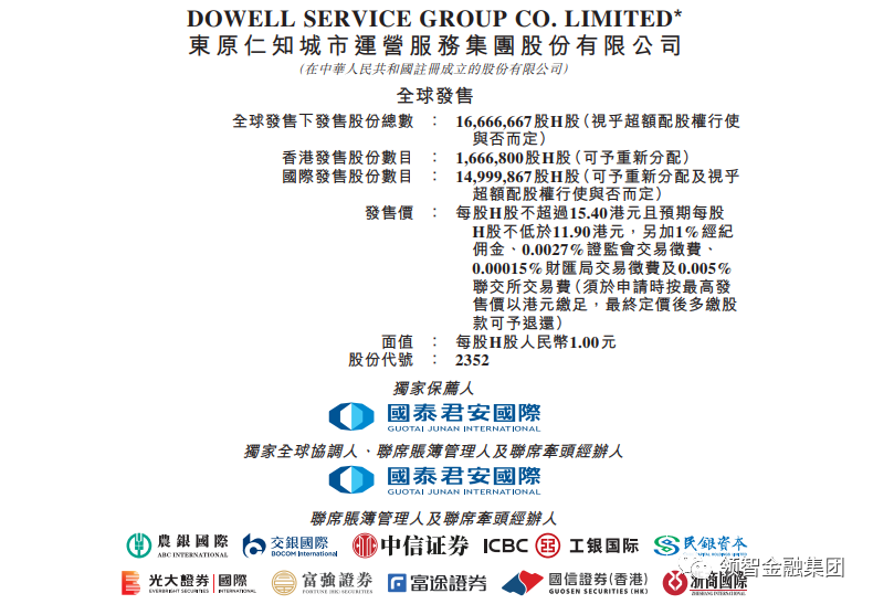 领智证券有限公司有幸担任东原仁知城市运营服务集团股份有限公司(股份代号:2352)全球发售之副牵头经办人