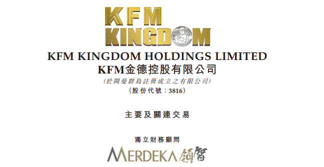 领智企业融资有幸担任香港主板上市公司:KFM金德控股有限公司(股份代号:3816)之主要及关连交易之独立财务顾问